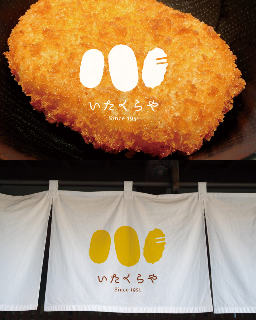 地域で長年親しまれている精肉店「いたくらや」様の店舗ロゴをデザインしました。 看板商品である〈コロッケ・ハムカツ・メンチカツ〉をモチーフに、そこに箸を添えることで「思わず手を伸ばしたくなる魅力」と「食卓の楽しさ」を視覚的に表現しています。 賑やかで温かみのある食卓をイメージさせることで、“美味しさを囲む幸せなひととき”をロゴから感じていただけるように仕上げました。